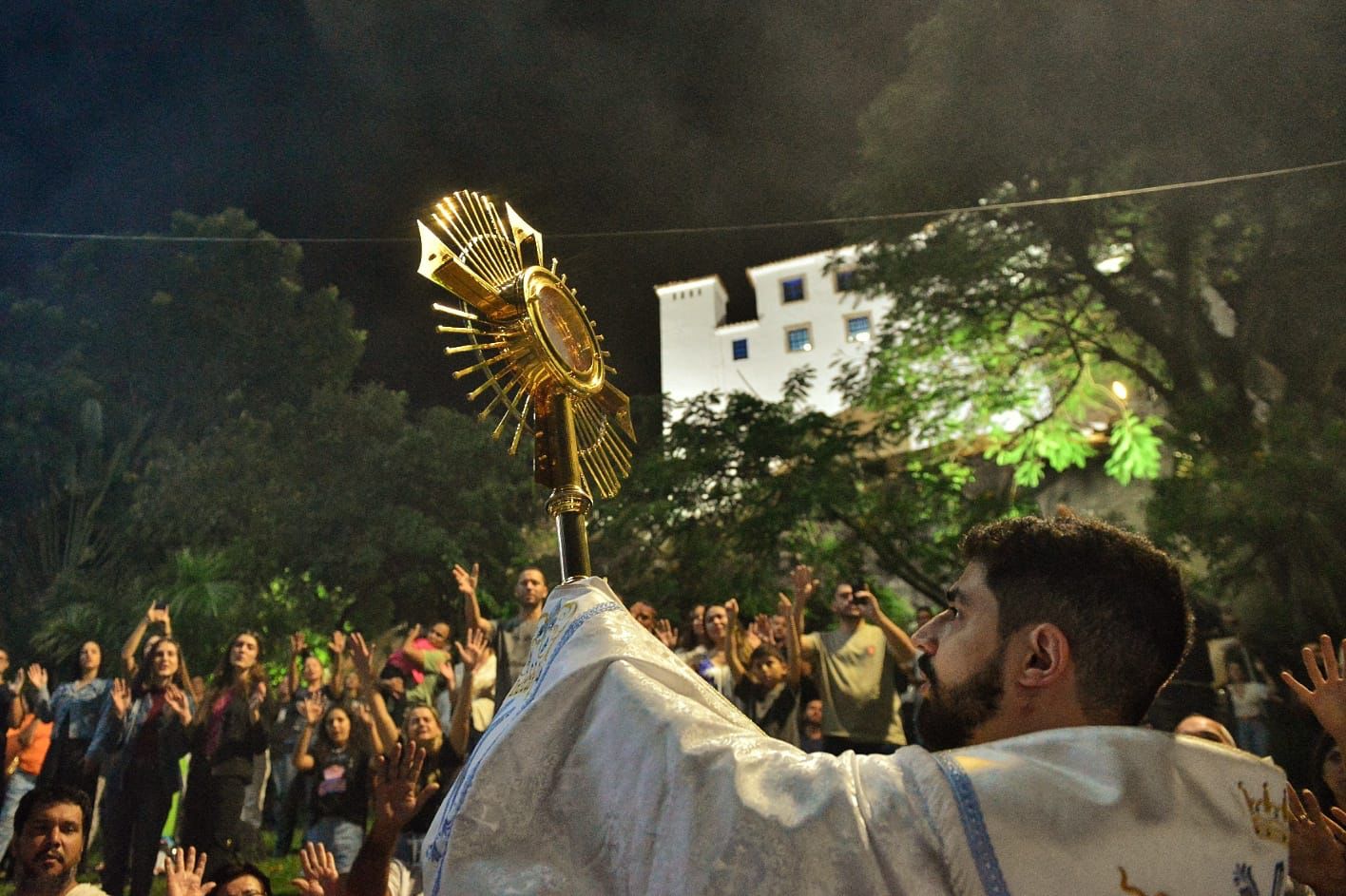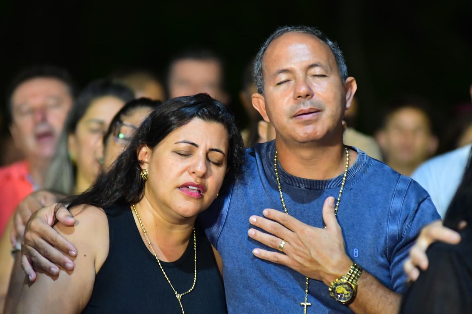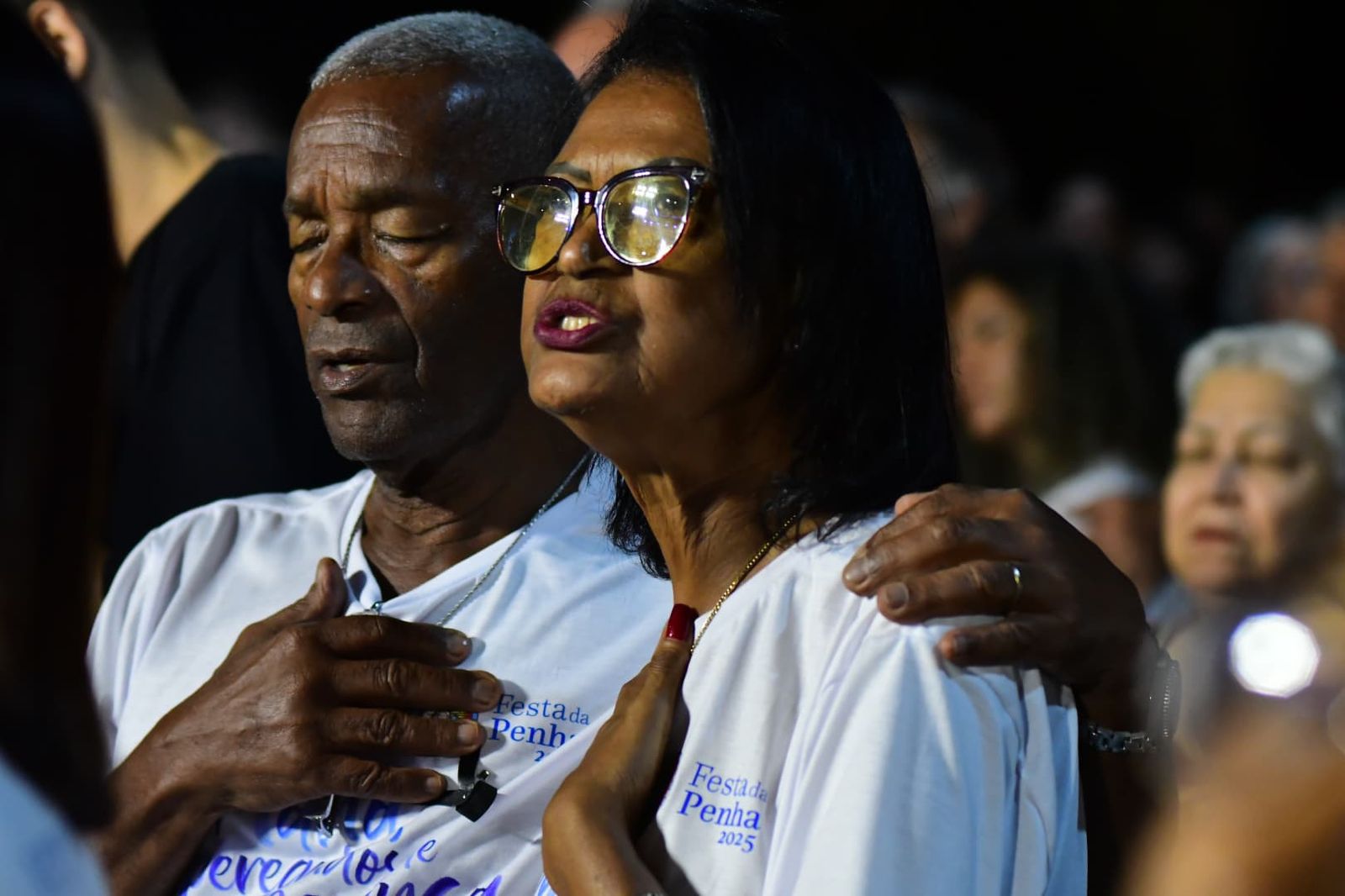 Centenas de casais subiram as ladeiras do Convento da Penha rumo ao Campinho na noite deste feriado de Tiradentes (21) para a noite de Benção dos Casais da Festa da Penha 2025. O casal missionário Ricardo Sá e Eliana Sá e o padre Éder Hoffman, da Paróquia Nossa Senhora da Saúde, da Serra, guiaram os casais – de todas as gerações, muitos com filhos – na noite de adoração e benção, pedindo bênçãos de Nossa Senhora da Penha às famílias.